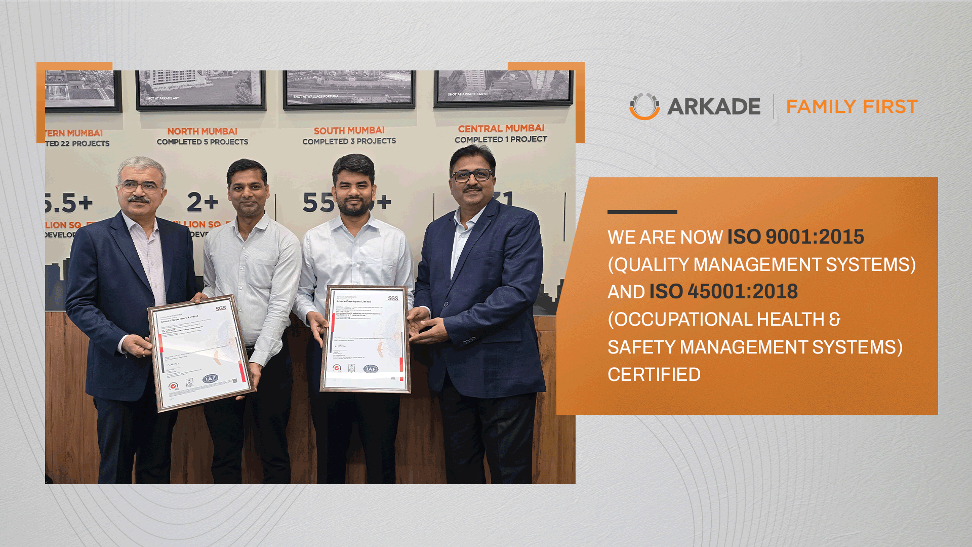 In this context, Arkade Developers achieving ISO 9001:2015 and ISO 45001:2018 certifications marks an important milestone. These globally recognized certifications are not just acknowledgements; they reflect a process-driven approach to quality management, construction safety, and long-term value creation in Mumbai’s highly competitive real estate landscape.